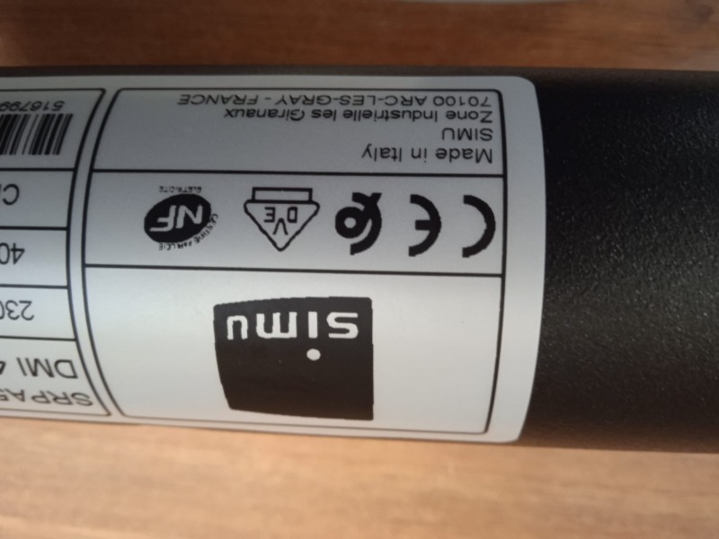 LA SOMFY, PROPRIETARIA DEL MARCHIO ASA, L'HA SOSTITUITO CON IL MARCHIO SIMU: IL MOTORE ASA MARCONI MO 50/12 E' DIVENTATO IL MOTORE SIMU SR MO 50/12